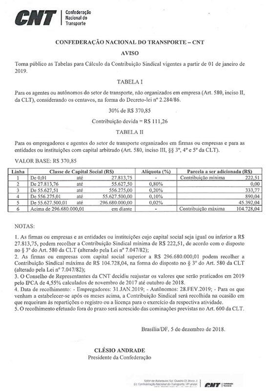 Contribuição Sindical 2019